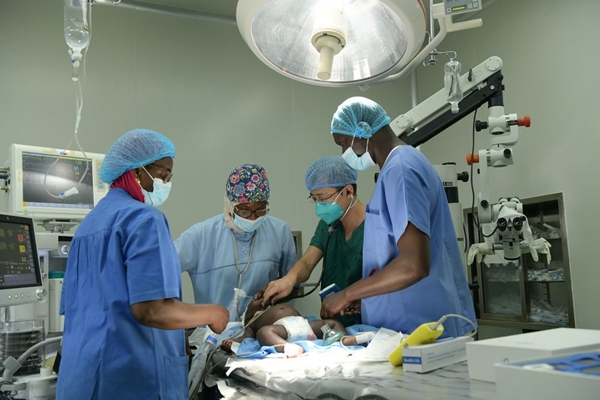 外科医生张勇(右二)为患儿做手术。