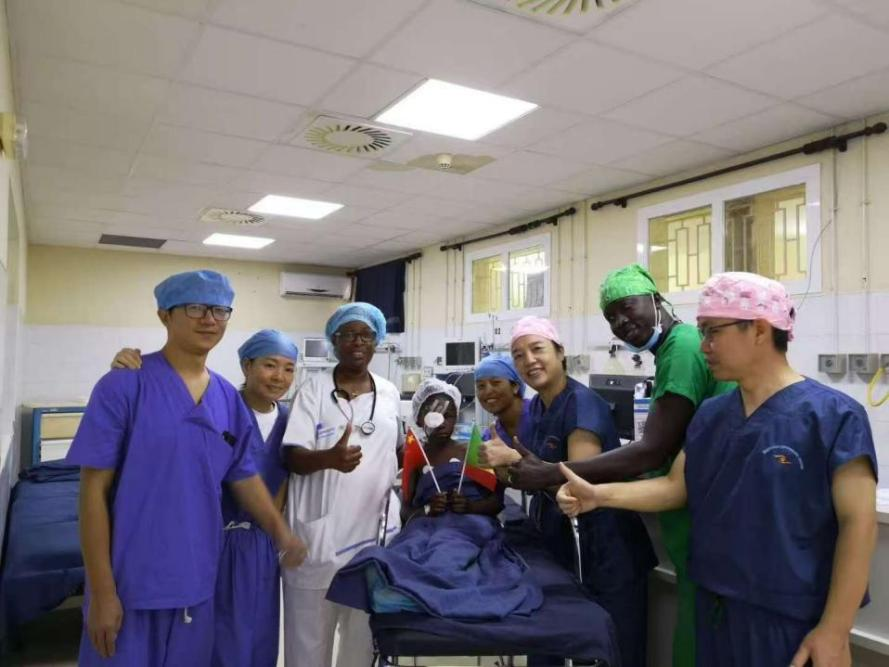 当时,我作为中国第17批援塞内加尔医疗队的翻译,见证了这个特殊病例痊愈的整个过程。按原计划,手术主要面向中老年患者,但Fatou的情况需要全身麻醉——这意味着需要塞内加尔医护团队的全力配合。面对这个挑战,中塞医疗团队迅速展开了协作。“光明行”眼科专家陈伟蓉教授决定给这个小女孩实施双眼手术,希望她能重返校园。我们陪同陈教授与比基纳医院麻醉科主任Sophie医生进行了深入沟通,塞方医护团队给予了充分支持,很快完成了麻醉方案和手术流程的协调。