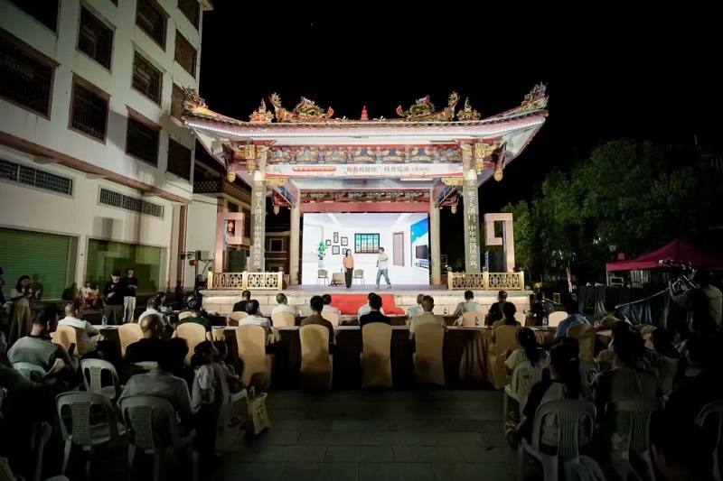 8月22日晚,2025年“健康福建 科普先行”——“戏曲说健康”科普巡演在漳州市龙海区海澄镇·澄古月港首演,活动将传统戏曲艺术与现代健康知识巧妙融合,为当地群众带来了一场别开生面的视听盛宴,线上直播同步进行,让更多人能够参与其中,了解健康知识,提升健康素养。