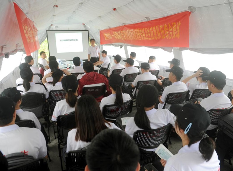 演练采取桌面推演和现场实操两种方式,从梳理病例监测、病例搜索、流行病学调查、病例采样检测、风险研判、应急响应等环节开展桌面推演;现场实操主要开展流行病学调查、病原学采样、水质采样、快检设备、消杀灭器械、无人机及后勤保障等现场处置科目演练,进一步提升队员现场应急处置能力。