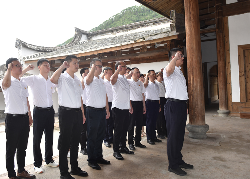 在闽清县廉政文化馆,大家依次参观了廉洁家书、反腐档案、警钟长鸣等主题展览陈列区。通过大量的图文资料和3D视频、AI互动等数字多媒体应用,进一步深入了解中国共产党反腐倡廉历程、古今孝廉家风家教文化和各类违纪违法案例的深刻教训,给党员干部们上了一堂“全景式”廉政警示教育课。随后,全体党员面对党旗重温入党誓词,在铮铮誓言中,把对党的绝对忠诚化为勇担使命的强大动力。