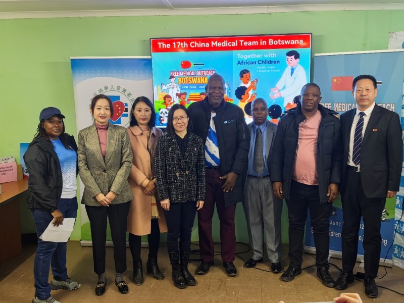 2025年6月22日,正值南部非洲寒冷的冬季,中国(福建)第17批援博茨瓦纳医疗队走进哈博罗内郊区特洛昆(Tlokweng)SOS儿童村,开展以“关爱非洲儿童,守护健康梦想”为主题的义诊与捐赠活动,为当地儿童和居民送去了温暖与关爱。中国驻博茨瓦纳大使夫人崔音参赞、SOS儿童村博茨瓦纳国家主任基措、当地社区酋长伊卡拉芬,第17批援博医疗队部分队员、华人华侨代表、使馆工作人员和儿童村居民共80余人参加活动。