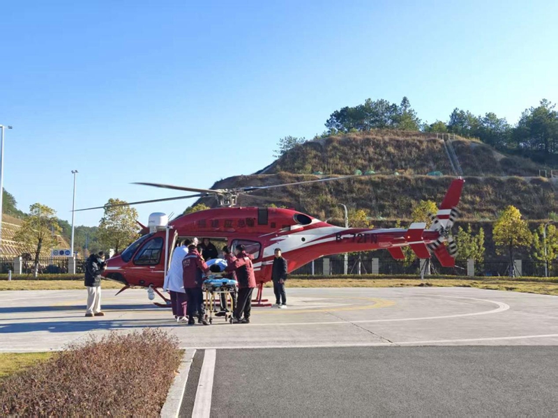 11月21日,在成功完成真实案例航空远程驰援的基础上,按计划继续开展科目二演练,模拟汀州医院1名30岁女性“急性广泛前壁心肌梗死”患者需紧急转运至协和医院,请求直升机转运。该科目设置完成长汀县紧急医学救援队骨干成员进行护送重症患者登、下机实操及乘机适应性训练,同时用103分钟完成模拟患者从汀州医院至协和医院的空中转运,模拟患者到达后通过绿色通道第一时间送到心脏医学中心导管室,空地配合默契,整个流程衔接顺畅。
