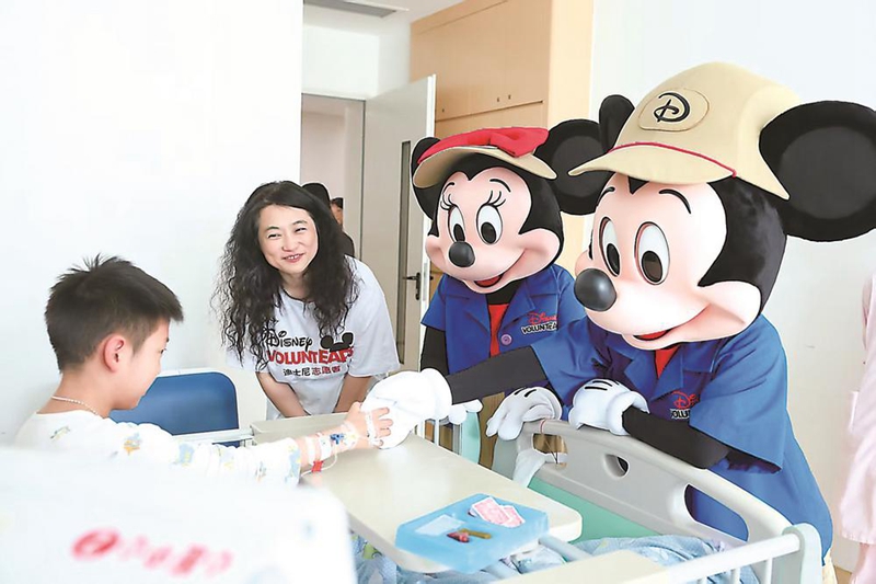 迪士尼动漫人偶走进福建省儿童医院病房为小患者送上六一儿童节的祝福。(受访者供图)