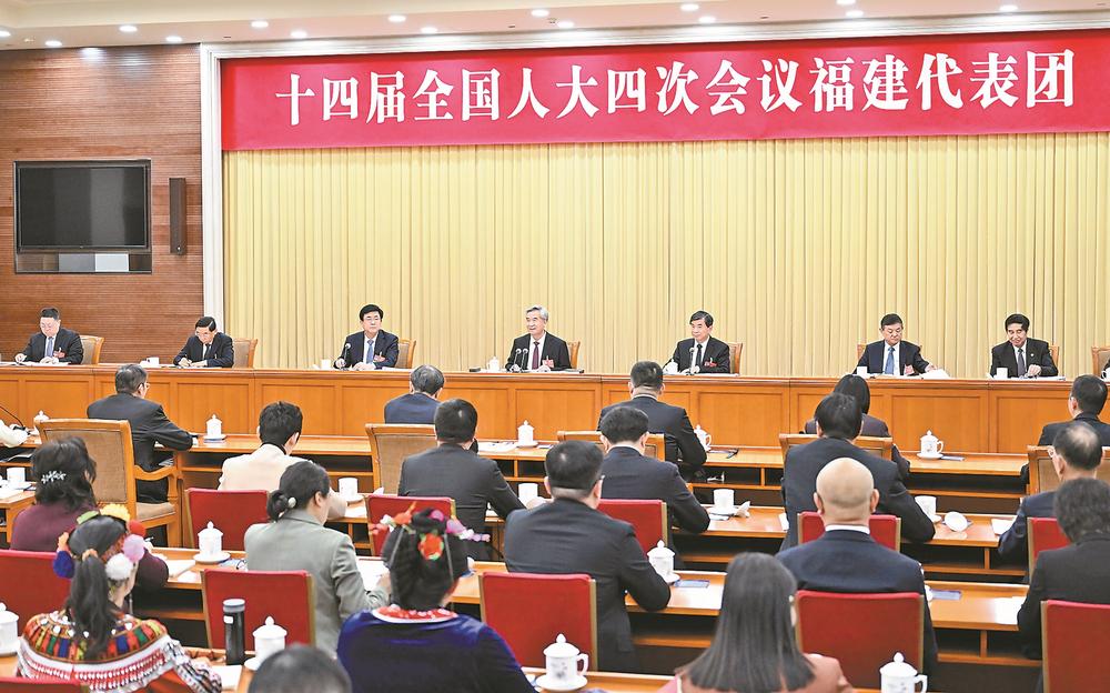 福建代表团团长、省委书记、省人大常委会主任周祖翼主持会议。他表示,要深入学习贯彻习近平总书记关于福建工作的重要讲话重要指示批示精神,认真落实李希同志的讲话要求,推动全省干部群众进一步把思想和行动统一到党中央决策部署上来,深入开展“深学争优、敢为争先、实干争效”行动,全力以赴拼经济、抓改革、促发展,持之以恒推进全面从严治党,在中国式现代化建设中奋勇争先。要突出筑牢政治忠诚,坚持不懈用习近平新时代中国特色社会主义思想凝心铸魂,不断提高政治判断力、政治领悟力、政治执行力,以实际行动坚定拥护“两个确立”、坚决做到“两个维护”。要突出推动高质量发展,全面深刻准确贯彻落实党的二十届四中全会精神,贯彻新发展理念,服务和融入新发展格局,稳中求进、提质增效推动福建经济社会发展,确保“十五五”实现良好开局。要突出全面从严治党,巩固拓展中央八项规定精神学习教育成果,认真开展树立和践行正确政绩观学习教育,统筹抓好中央巡视、审计、统计等监督反馈问题整改,以更高标准、更实举措推进全面从严治党,巩固拓展福建风清气正的良好政治生态。(新华社记者 福建日报记者 周琳)