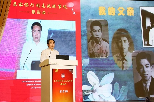 11月29日下午,福建医科大学附属第一医院在福州会堂举办慕容慎行同志先进事迹报告会。主席台大屏幕上,一幕幕播放着慕容慎行生前的动人影像,将观众带进了无限怀念。