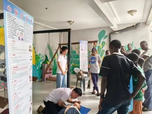 为提高孤儿院工作人员和儿童应对突发状况的能力,麻醉科副主任医师张文清在法语翻译刘雅妮的协助下,开展了心肺复苏(CPR)和海姆立克急救法培训。通过理论讲解、模拟演示和“手把手”指导,参训人员逐步掌握了急救操作要领。现场互动积极,每位参训人员都进行了实操演练,每个技能都获得规范指导,确保技术规范。
