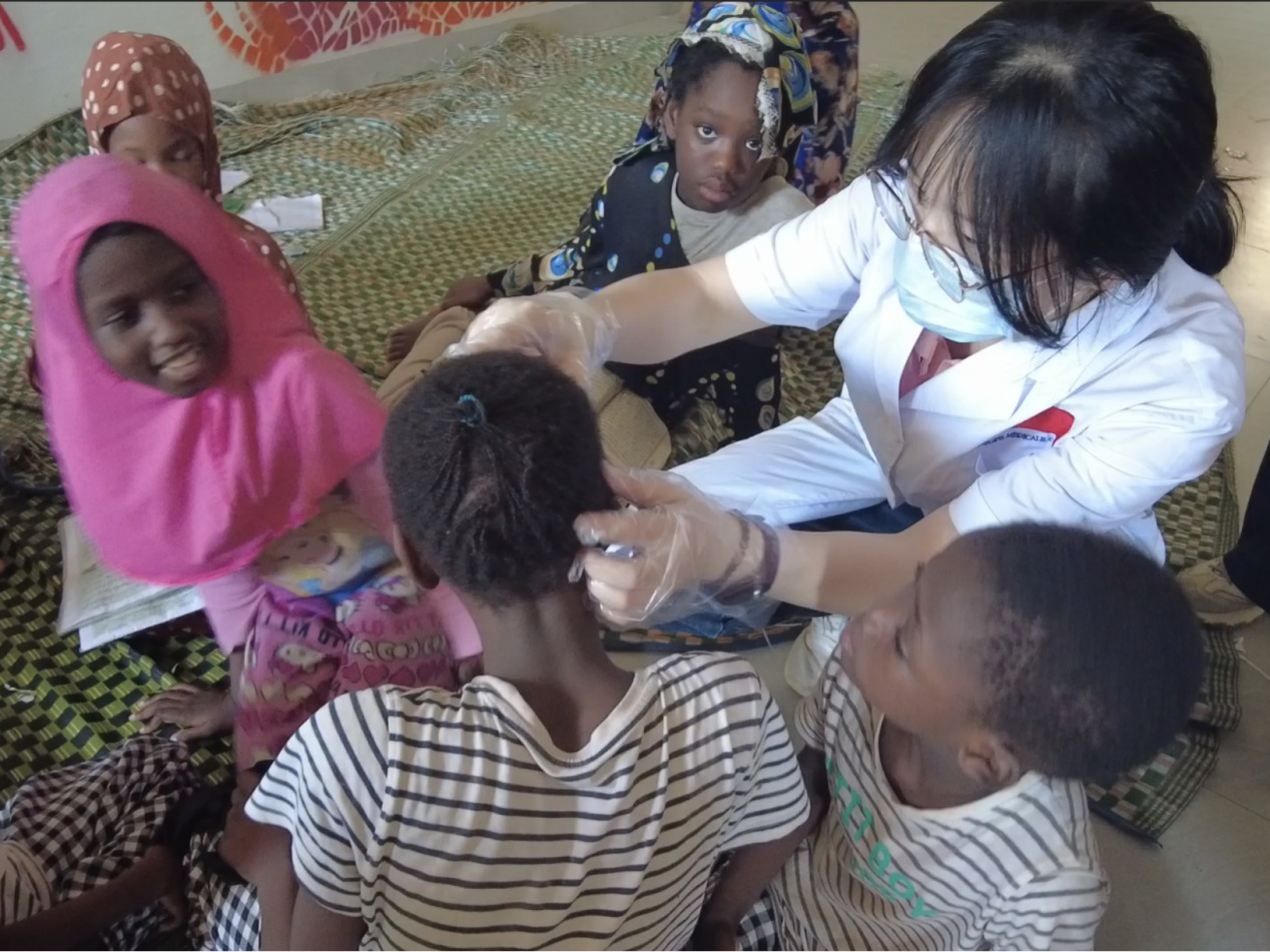 近日,中国援塞医疗队皮肤科主治医师肖翠容再次前往达阿里·塞林·萨利乌·姆巴克孤儿院为皮肤病患儿复诊,细致检查皮疹并调整治疗方案。她的专业技术和温暖关怀赢得了孩子们的信任,更获得孤儿院院长及工作人员的高度称赞和衷心感谢。