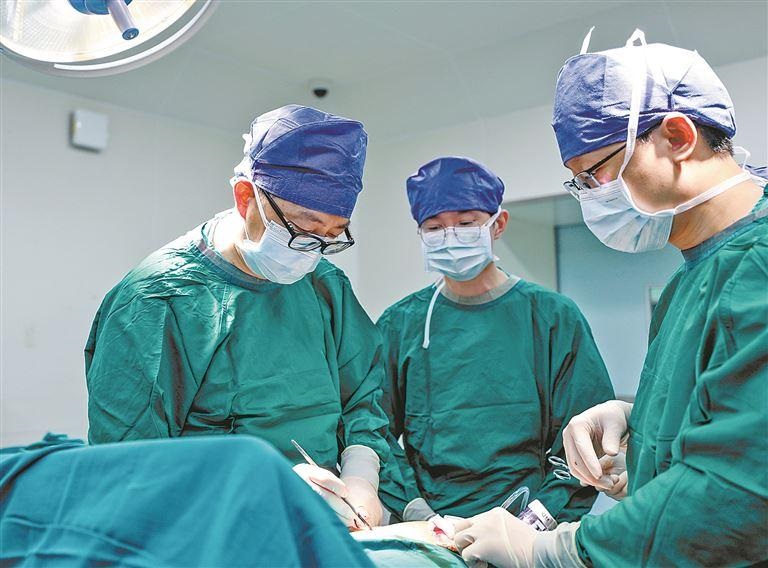 厦门市中医院党委书记、国内知名肝胆胰外科专家尹震宇(左一)带领团队开展高难度手术。(本组图/张奇辉 摄)(除署名外)