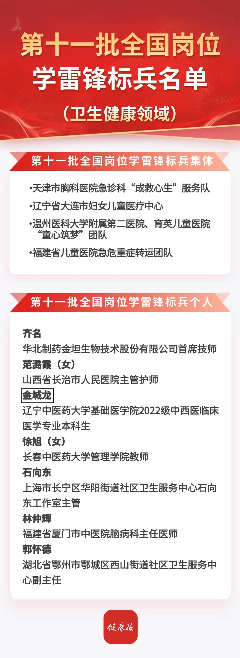 福建省儿童医院急危重症转运团队被评为学雷锋标兵集体。福建省厦门市中医院脑病科主任医师林仲辉被评为学雷锋标兵个人。