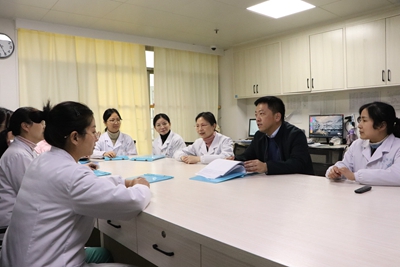 福建省肿瘤医院副院长、肿瘤与血管介入科主任医师方主亭来到邵武市立医院胸心血管外科带教查房,指导治疗团队为一名下肢动脉硬化闭塞的患者调整药物剂量,指导护理团队为患者做好康复训练。
